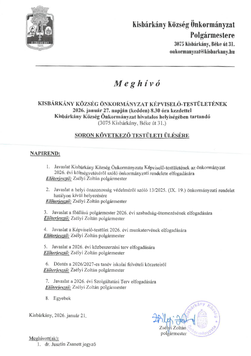 meghívók, előterjesztések